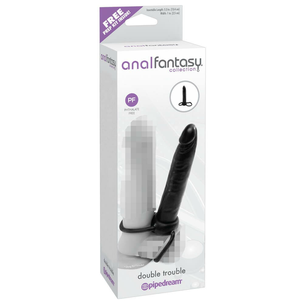 Analfantasy Double Trouble - dildo anal clip-on (negru) Este fabricat din material plăcut, elastic, cu o formă de penis, gland în formă, suprafață ușor venată, inel pentru penis și testicul. Inelele sunt flexibile, astfel încât se potrivesc perfect pe toate dimensiunile și mențin dildo-ul în poziție în timpul actului sexual. În plus, acestea oferă... Mai multe informații
