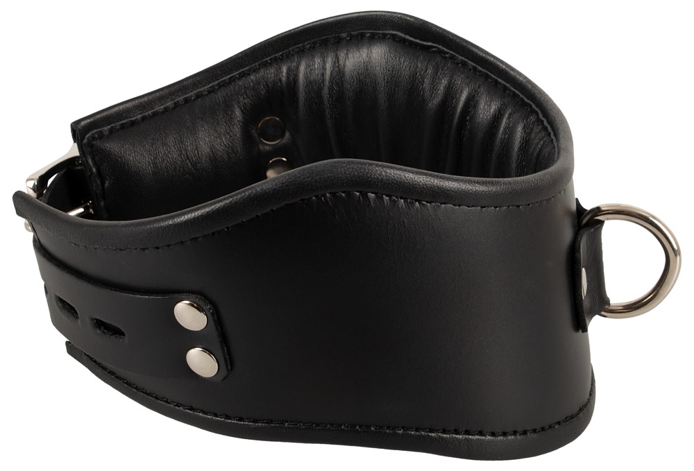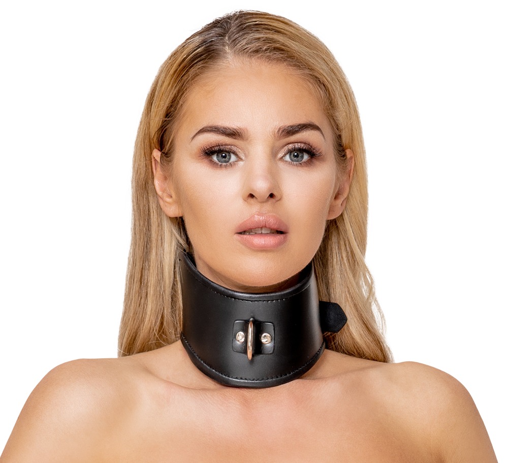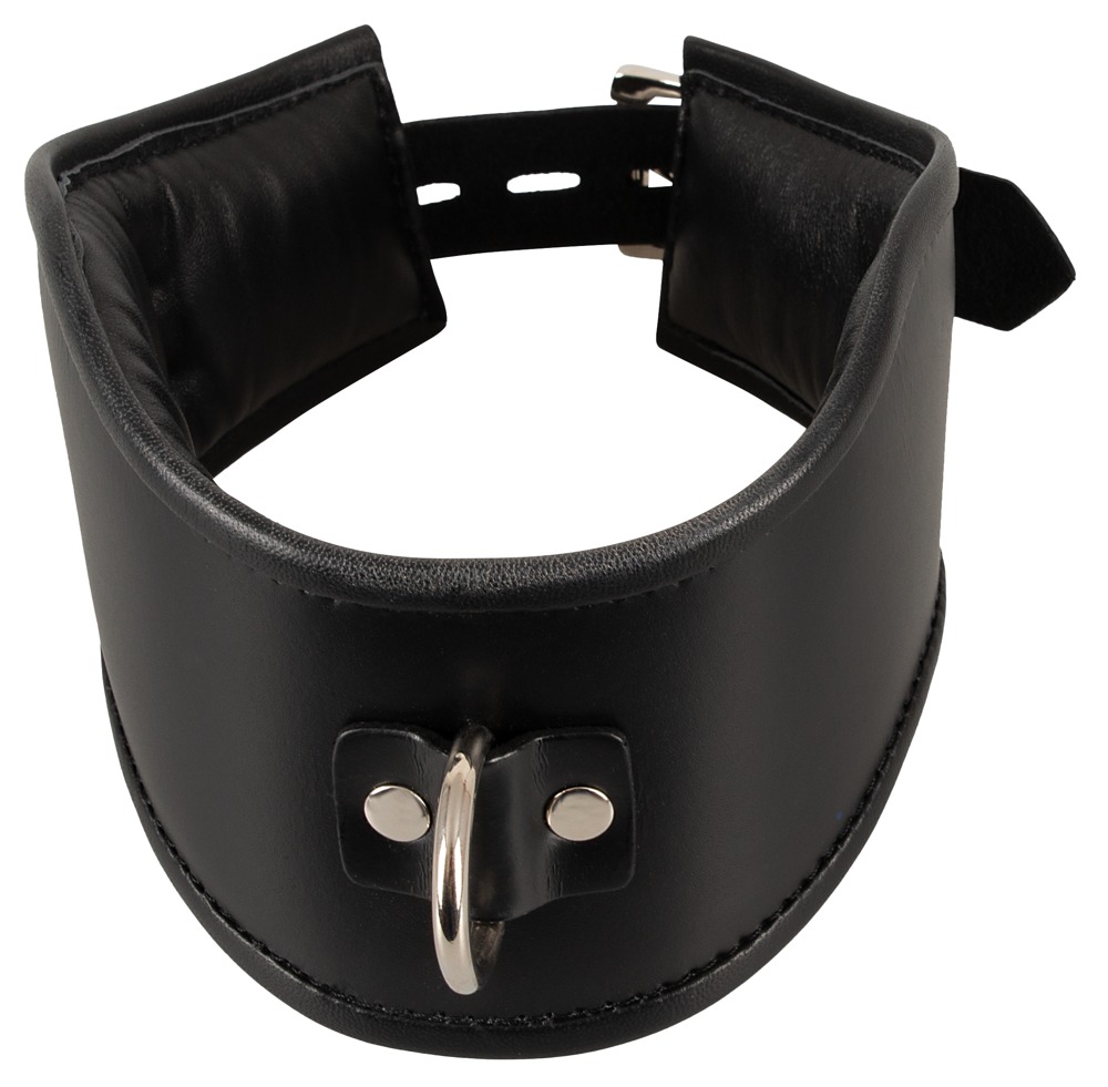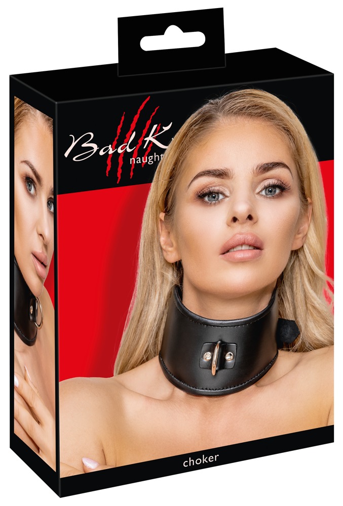 Bad Kitty Choker - zgardă din piele cu inel (negru)