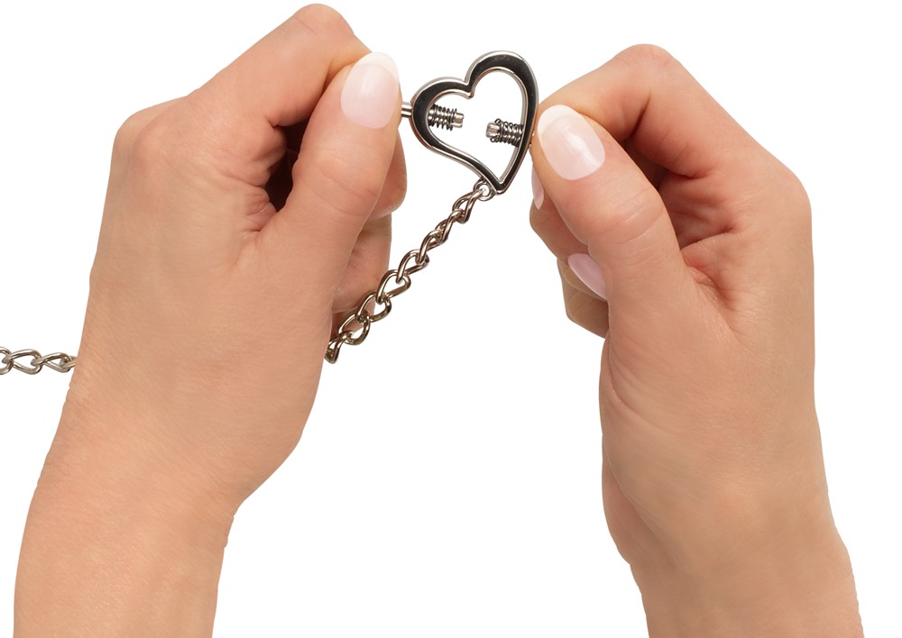 Bad Kitty - Cleme pentru mameloane în formă de inimă (argintiu)