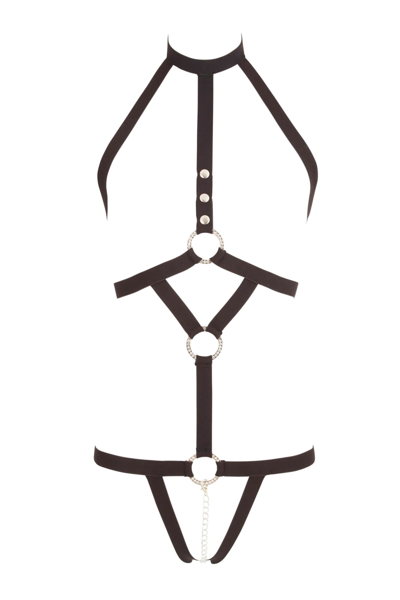 Bad Kitty - body din bretele și inele cu pietre prețioase- negru (S-L)Body minimalist super sexy, de parcă ai fi prinsă de bretelele care te îmbracă dezbrăcată. lenjerie intimă stil body complet deschisă, din bretele elastice, în care bretelele sunt ținute împreună de inele metalice strălucitoare, înțesate cu pietre prețioase albe, de parcă ar fi bijuterii.... Mai multe informații