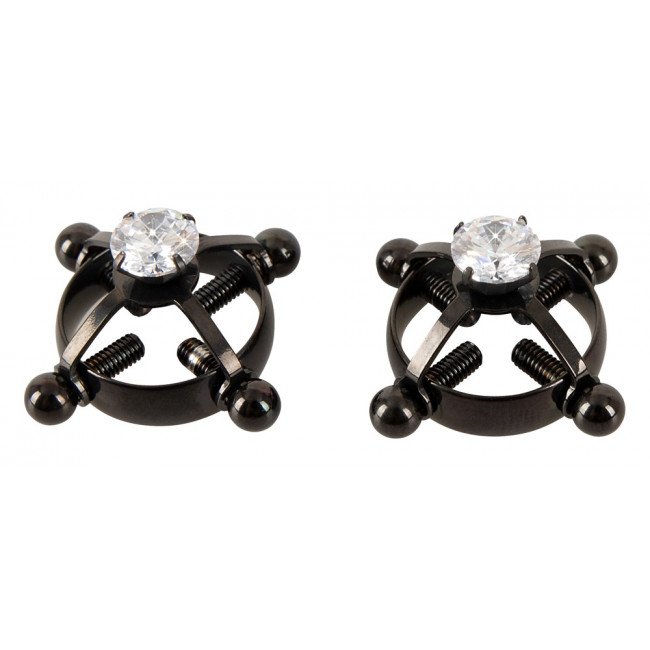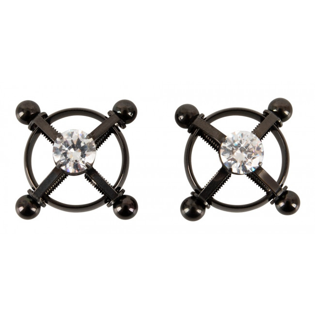 Bad Kitty - Ornamente pentru sfârcuri cu șurub (cu pietre) negru