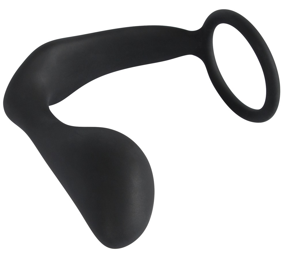 Black Velvet - plug anal cu inel pentru penis (negru)