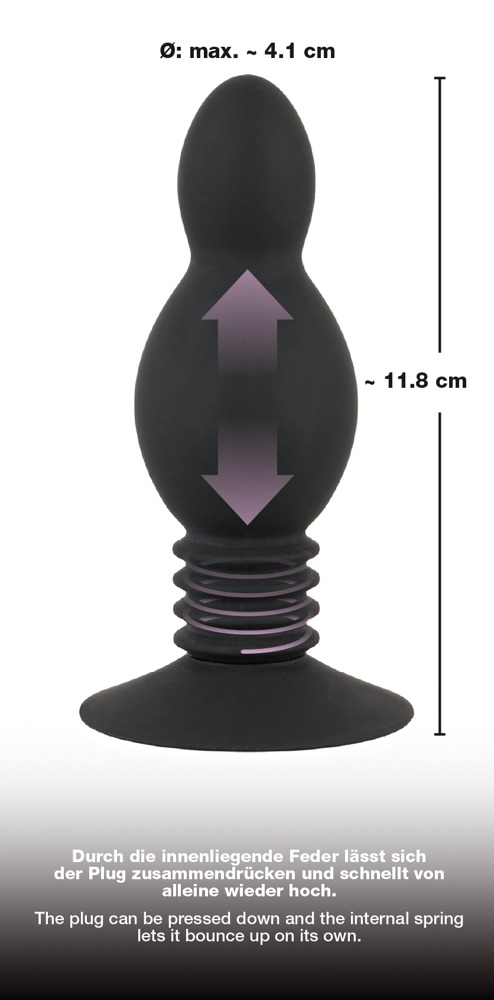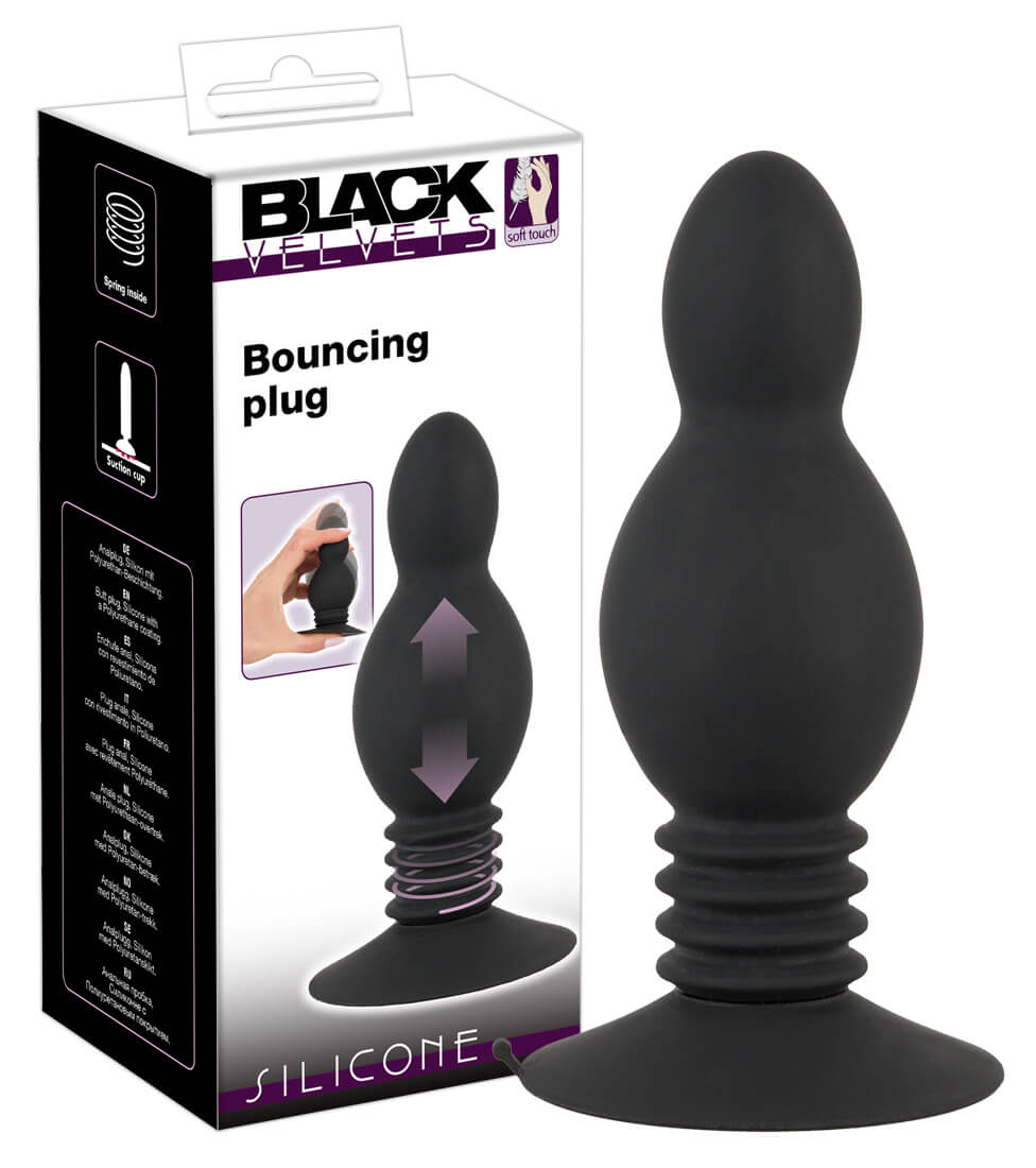 Black Velvets Bouncing Plug - vibrator anal de primăvară cu ventuză (negru)