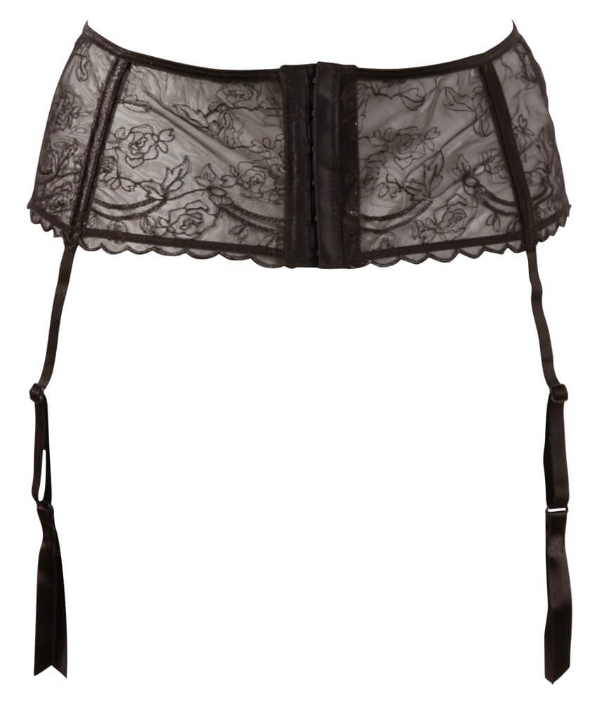 Lenjerie incitantă care vorbește de la sine despre erotică! Dantela fină, cu model, într-un design frumos, perfect lucrat. Portjartieră este echipat cu 4 bretele reglabile si carlige in spate. În partea din față veți găsi și o fundă de aur. Material: 100% poliester. În negru. Se livreaza fara ciorapi.