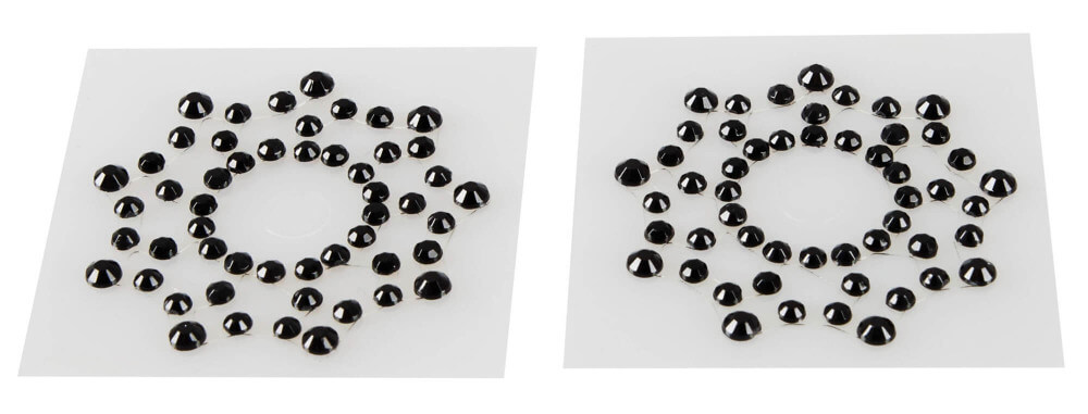 O bijuterie cu adevărat senzuală și în simplitatea ei spectaculoasă, la vederea ei inima fiecărui bărbat se va topi!O bijuterie cu un autocolant care smălțuiește senzual sfârcurile cu pietre și stele negre strălucitoare. 1 pereche, adică 2 piese de bijuterie în pachet. Diametrul fiecărui ornament aprox. 1,5 cm. Culoare negru.