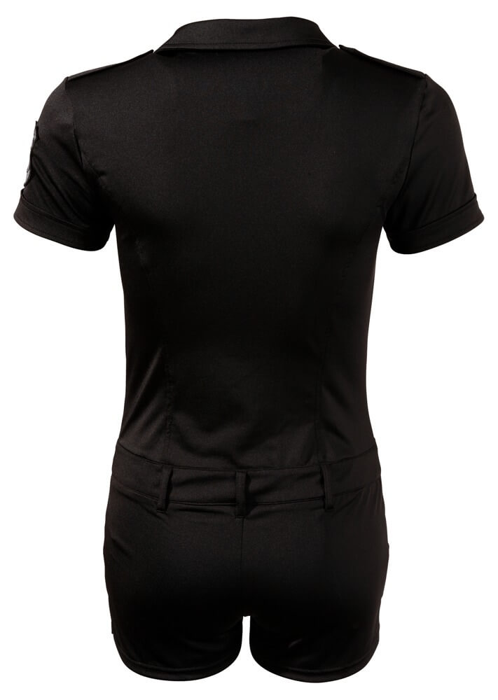 Niciun bărbat nu poate rezista unei asemenea polițiști. Datorită croiului subțire, salopeta mini urmează perfect liniile corpului. Este confectionat din material elastic negru, are inchidere patentata pana la bridele de centura, nasture in partea de centura si fermoar in partea de pantaloni. Pe piept sunt mici buzunare, mâneca este decorată cu emblema... Mai multe informații