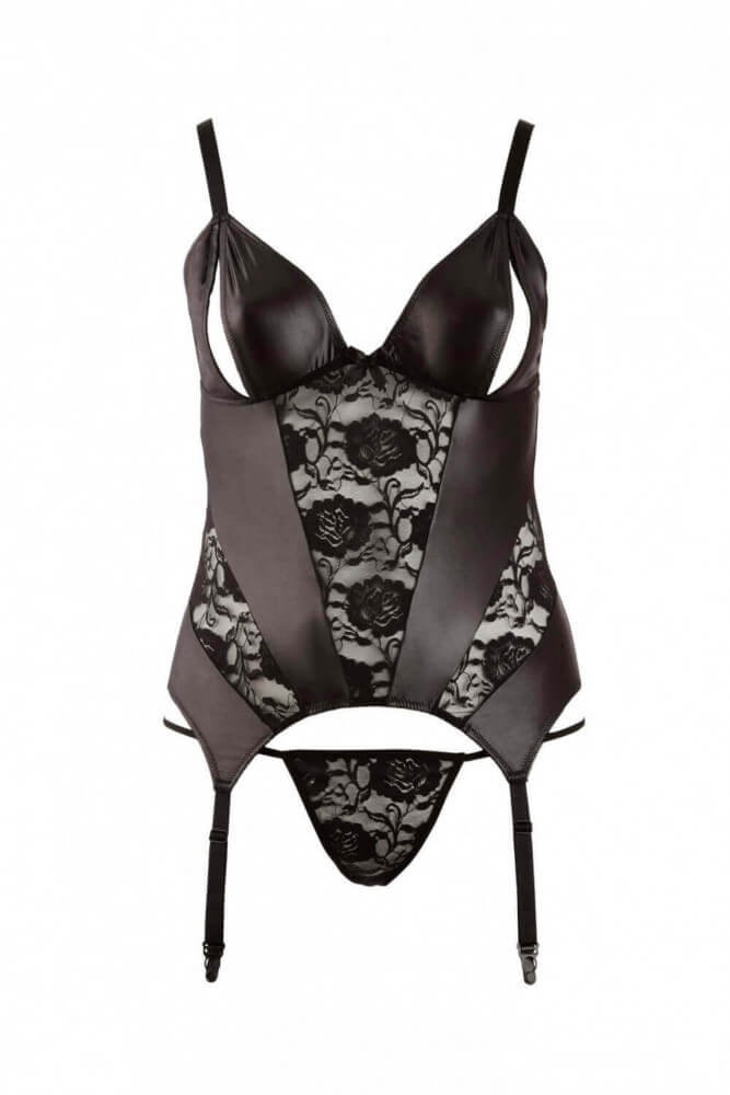 Croiala varfului subtiaza silueta si nu acopera mameloanele. Bretelele pentru jartiere și bretelele de umăr sunt reglabile.