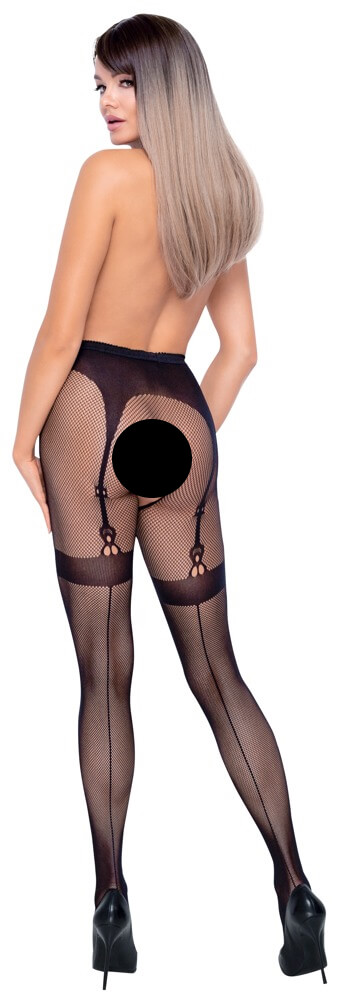 Cottelli Legwear - Ciorapi cu plasă deschisă cu efect jartieră - Negru (S-L)