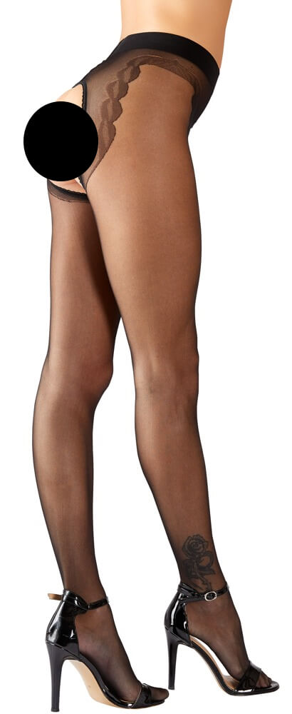 Ciorapi deschisi cu efect dublu Cottelli (negri)Ciorapi foarte moi, flexibili, de calitate, care sunt complet deschisi in zona pubiana si pot fi purtati si in timpul actului sexual.Cu o grosime a materialului de 20 DEN.Cu picior întărit, elastic, partea largă a taliei.Cu modele speciale de valuri pe ambele părți ale șoldurilor, de parcă chiloții și... Mai multe informații