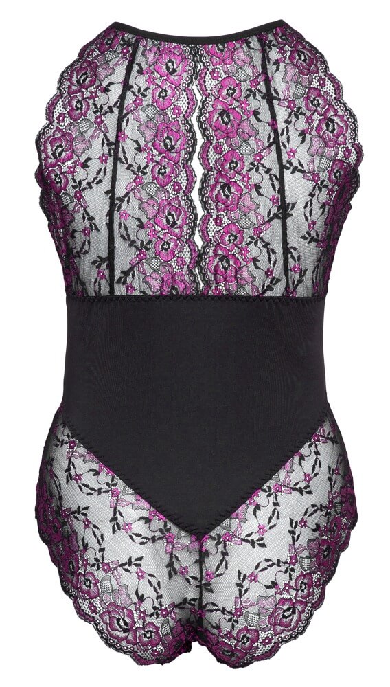 Cottelli Plus Size - corp floral (negru-violet) Cu modele florale exclusive, un corp special care imbunatateste decolteul, care ofera un aspect impresionant! Conținutul pachetului: 1 puncte Avantaje: Material elastic, moale - confortabilCu dantela transparenta, unica, lucrata cu precizie, cu model floral pe piept si talie - frumoasa, spectaculoasa... Mai multe informații