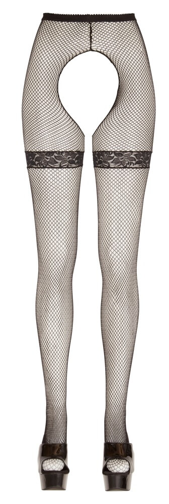 Cottelli - ciorapi plasa (negri) Ciorapi din material plasă cu inserție de dantelă în partea superioară a coapselor pentru un aspect atractiv și sexy. Realizate din material flexibil, cu design deschis in zona vaginului si a fundului, astfel incat sa poata fi purtate chiar si in timpul sexului. Ideal pentru sex spontan, doar trageți fusta și jocul... Mai multe informații