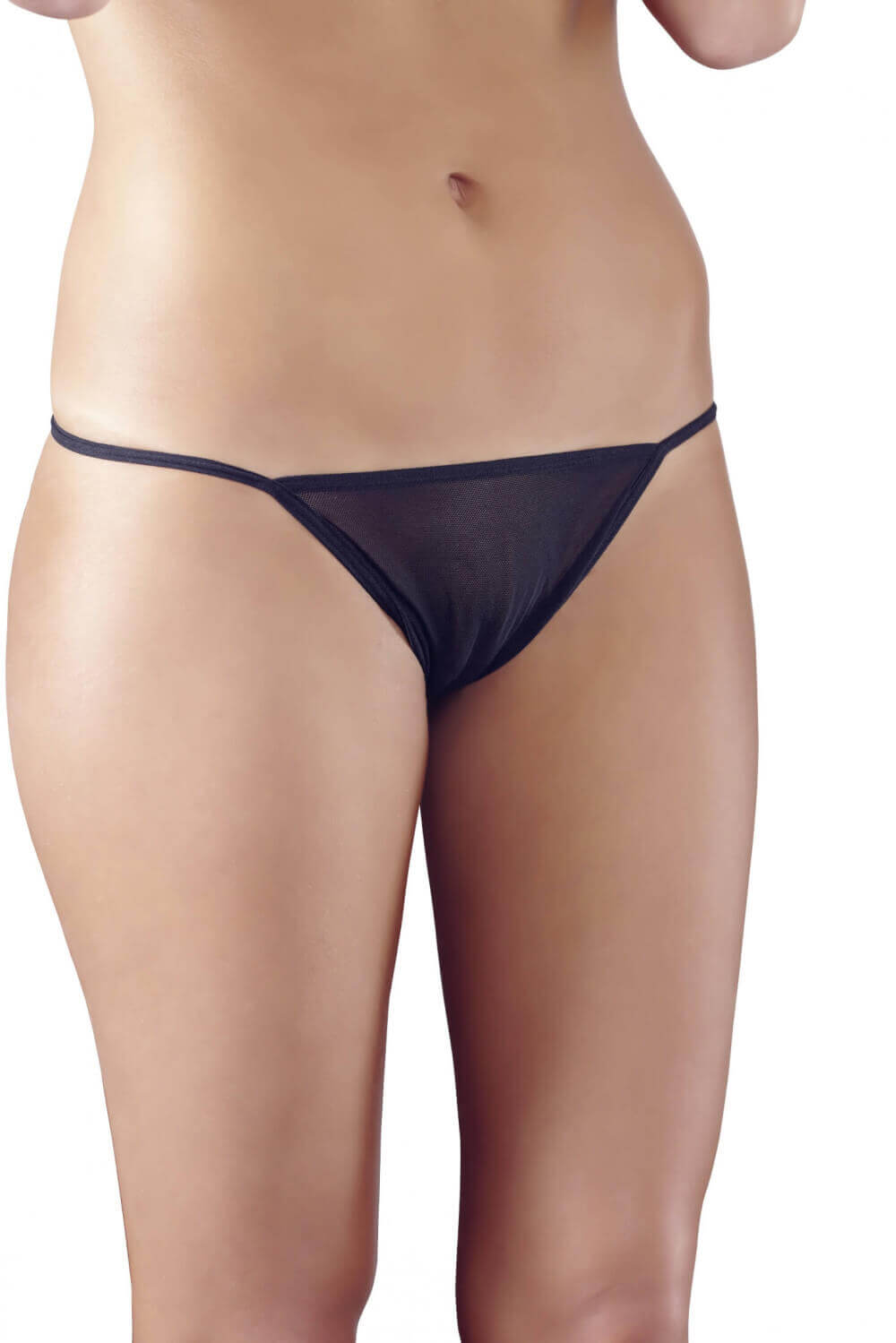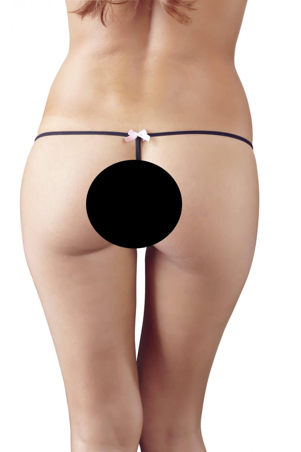 -1 bucata de tanga in forma de T cu plasa translucida cu plasa mica, cu balamale flexibile, decorata cu o fundita mica, roz la spate