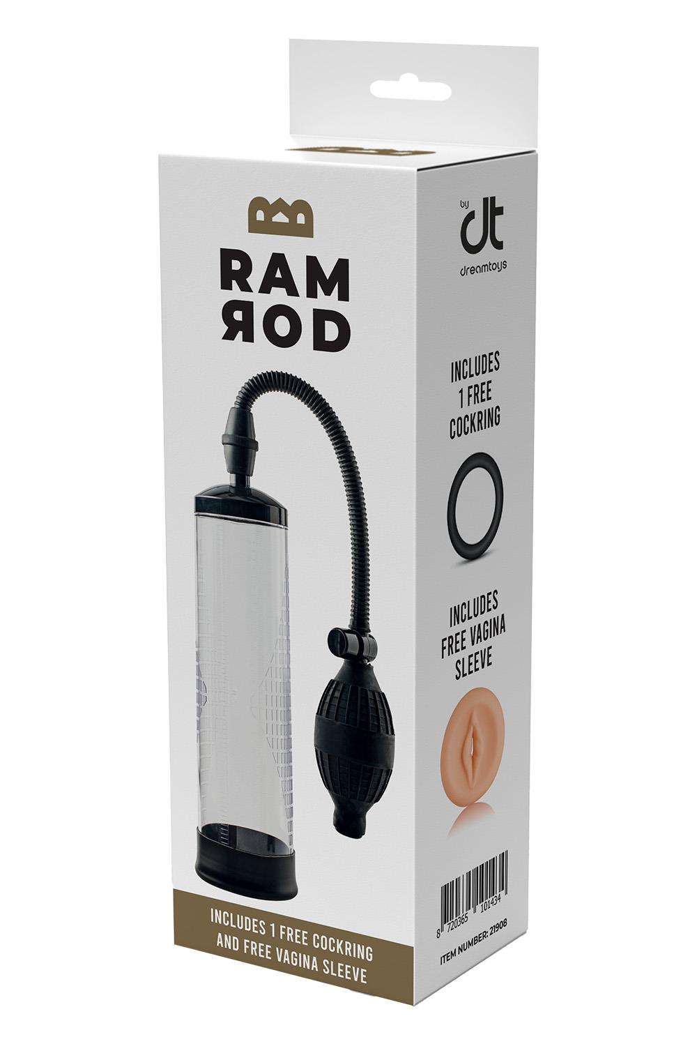 Dream Toys RAMROD Classic – pompă manuală cu vacuum pentru penis 20 cm + manșon și inel