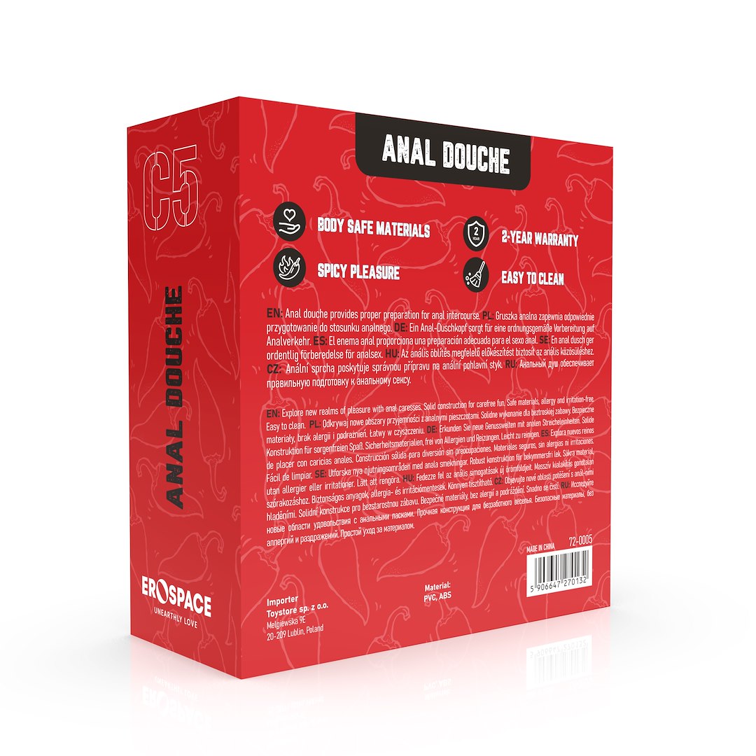 Asigurați-vă confortul și igiena înainte de actul sexual anal cu dușul nostru anal. Principalele caracteristici ale produsului: Fabricat din materiale sigure pentru piele: PVC și ABS Design ergonomic pentru o aplicare ușoară Construcție durabilă Ușor de curățat garanție de 2 ani Descriere detaliată: Dușul nostru anal asigură o pregătire adecvată pentru... Mai multe informații