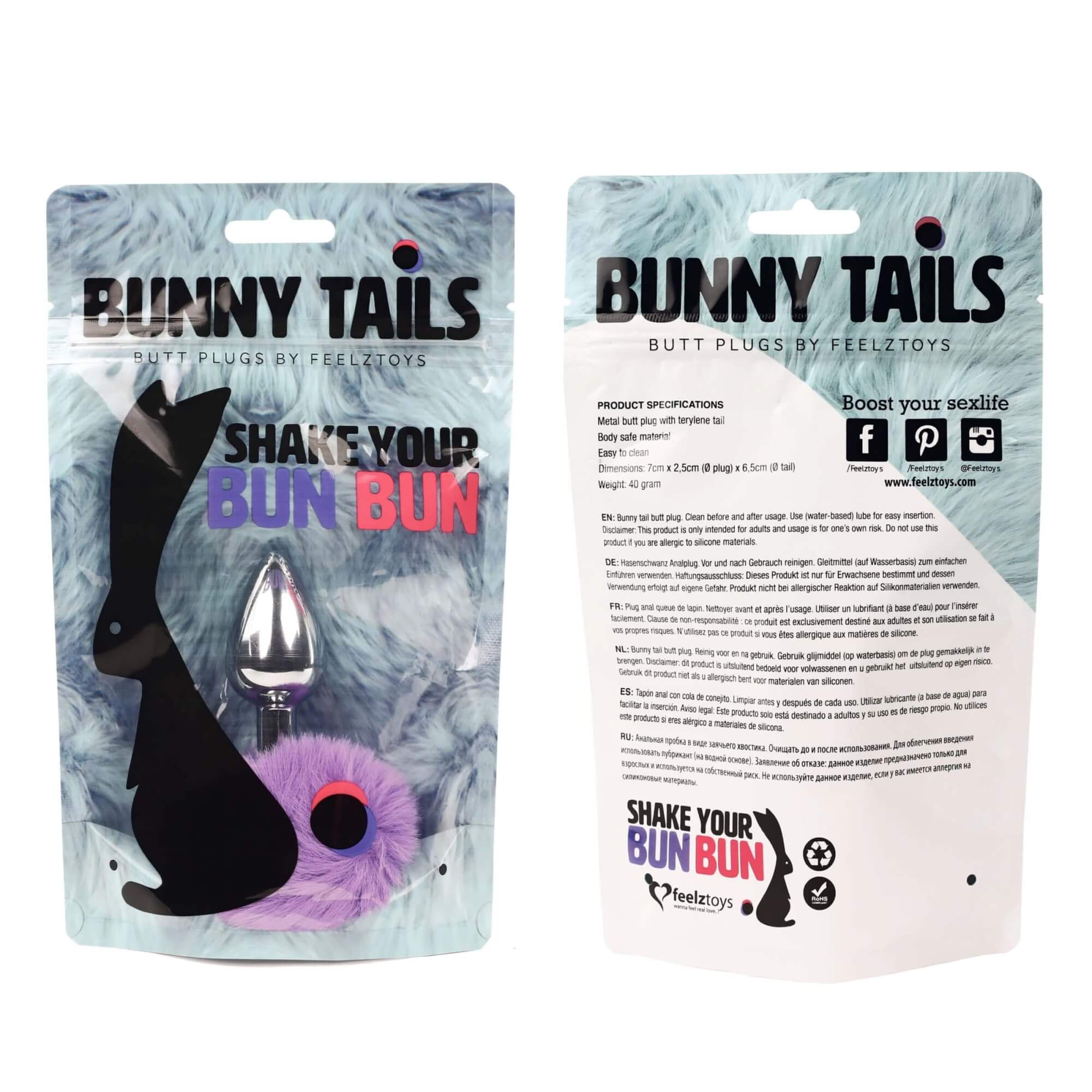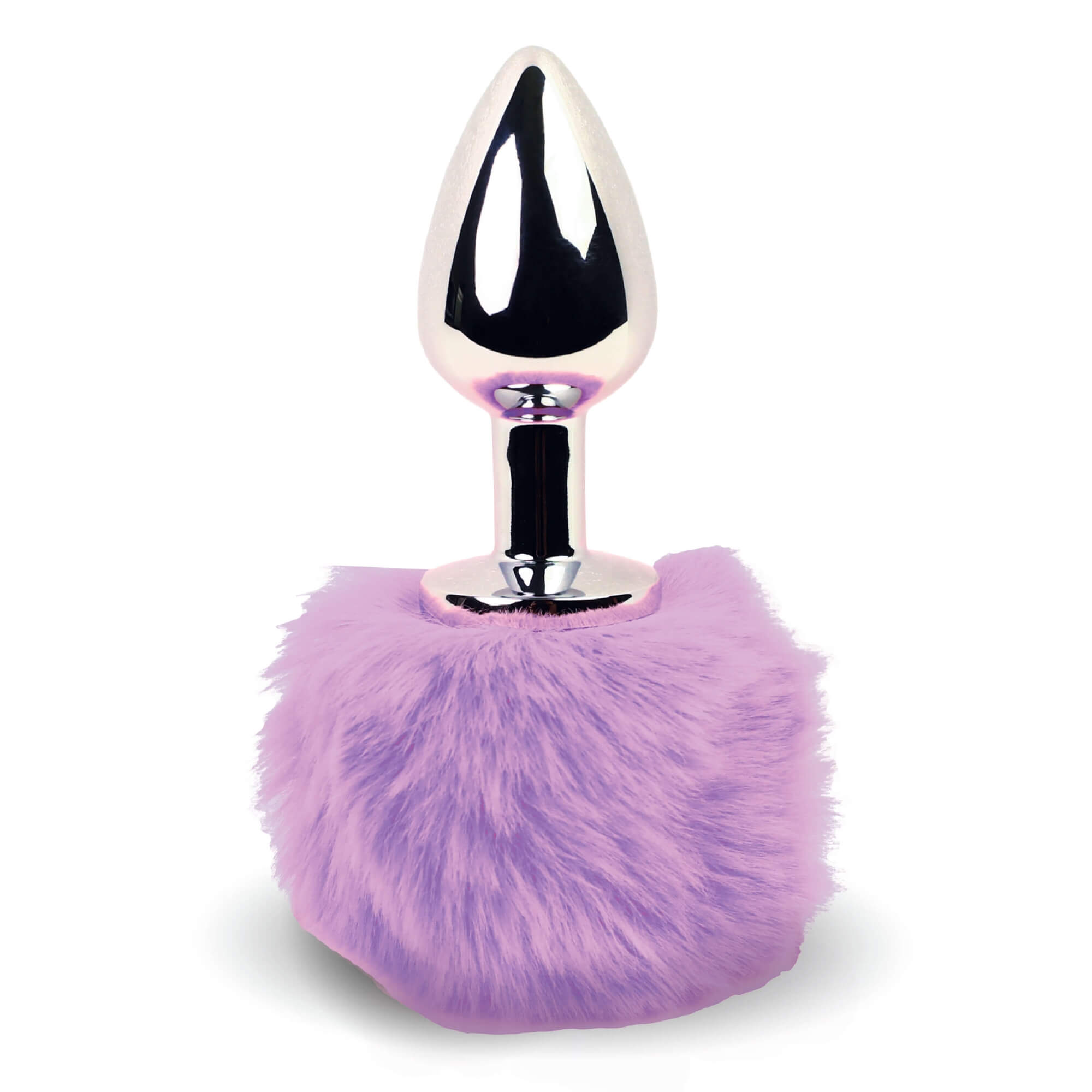 FeelzToys Bunny Tails Butt Plug - plug anal metalic cu o coadă de iepure (argintiu-violet)
