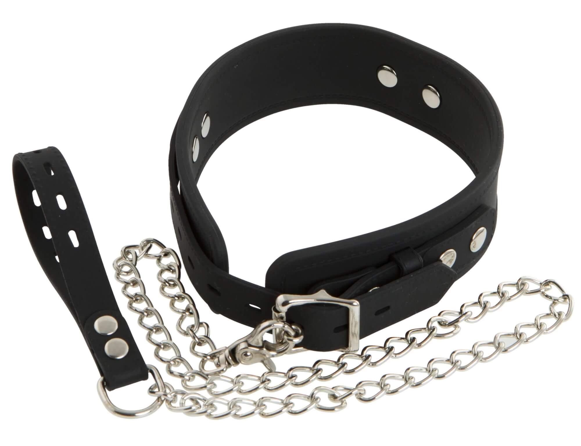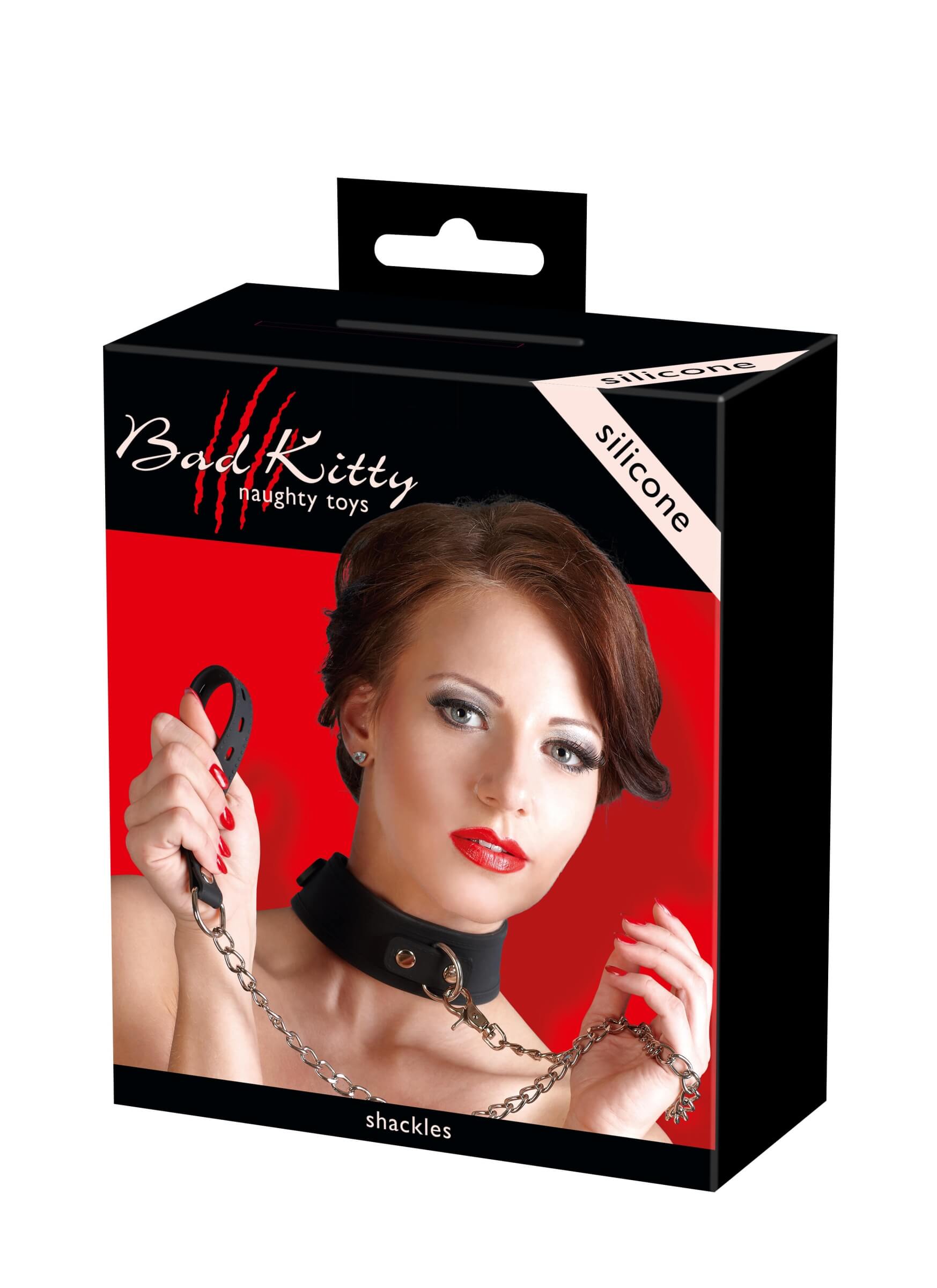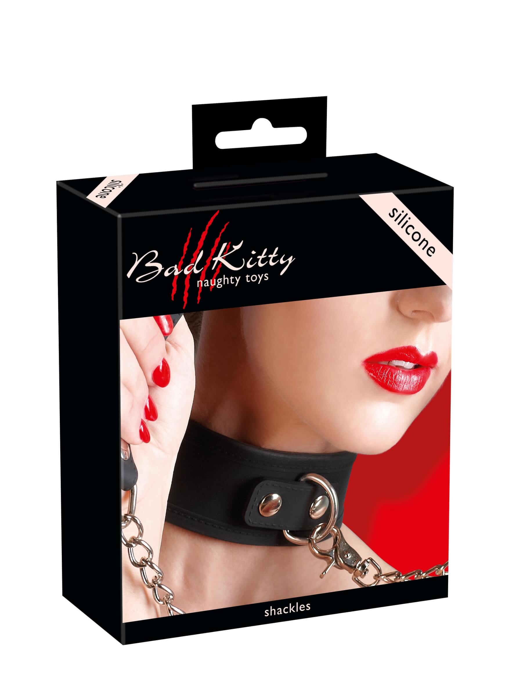 Guler din silicon Bad Kitty cu lesă (negru)