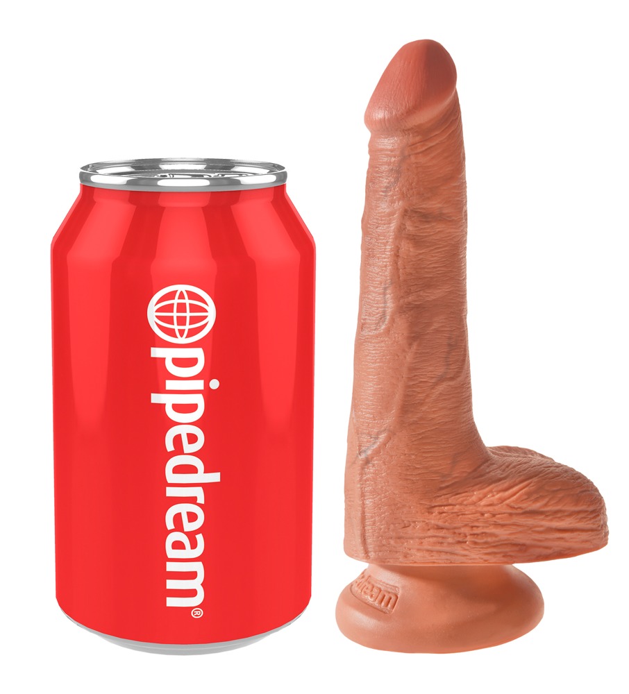 King Cock 6 cu bile - dildo realist cu testicule 15cm (maro)
