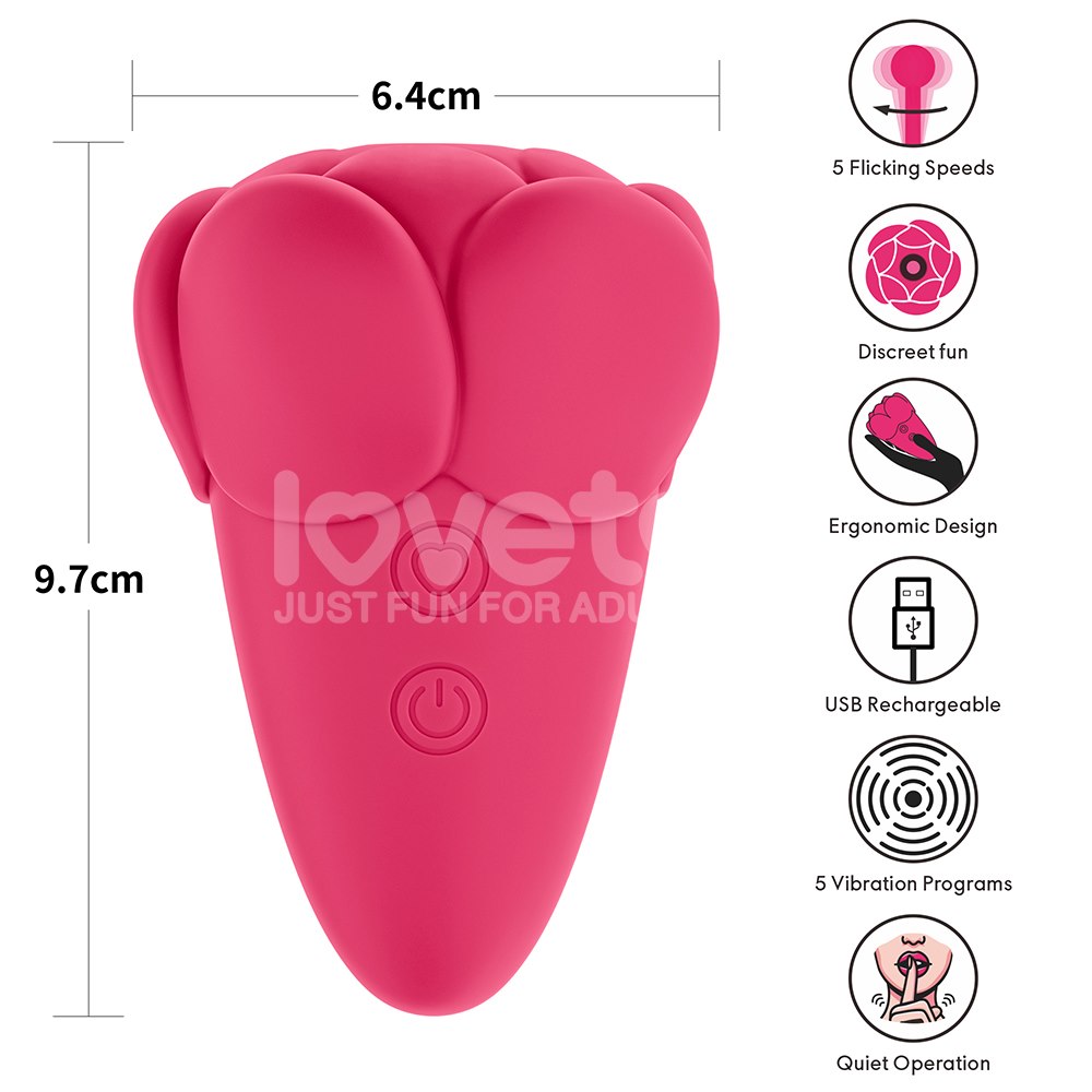 Descoperă plăcerea intensă cu vibratorul de lux LoveToy Flicker. Designul său unic, inspirat de forma unei flori, ascunde o limbă centrală care se mișcă delicat, imitând în mod realist senzațiile de stimulare orală. Cu combinația dintre 5 moduri de vibrații și 5 viteze ale limbii, oferă o stimulare profundă și clipe de neuitat.