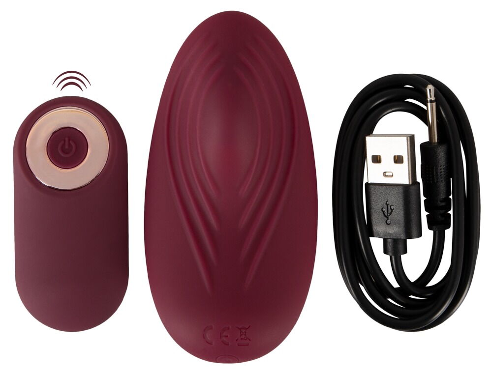 Creați-vă plăcerea secretă cu un control wireless care se ascunde pur și simplu în chiloți! Practicabilul vibrator Panty Vibe este ideal pentru un masaj variat și punctual. Este acoperit cu silicon moale catifelat și are o formă ergonomică.Controlați-l cu telecomanda radio sau schimbați controlul cu partenerul dvs. pentru a adăuga puțină excitare la cină sau la orice altă întâlnire.Beneficii : Material de înaltă calitate, prietenos cu pielea - ideal pentru persoanele sensibile Forma ergonomică, se potrivește perfect curbelor unei femei Design ascuns în lenjeria intimă Control fără fir cu telecomandă radio 10 moduri diferite de vibrații - plăcere variată Baterie încorporată - fără griji legate de baterii Raport calitate/preț excelent, datorită ambalajului ecologic! La ce să fiți atenți: Pentru lubrifiere, se recomandă utilizarea numai a lubrifiantului pe bază de apă Curățați și dezinfectați bine înainte și după fiecare utilizare Când îl depozitați, asigurați-vă că nu intră în contact cu alte produse Dispozitivul nu este rezistent la apă, deci aveți grijă să nu lăsați apa să pătrundă în părțile electrice atunci când îl curățați Telecomanda funcționează cu o baterie CR2032, care este inclusă în pachet Ambalat într-o pungă! Control: Există un buton pe partea superioară a produsului care, atunci când este ținut apăsat, pune dispozitivul în modul de așteptare, din acel moment poate fi controlat și cu telecomanda wireless. pe telecomandă, țineți apăsat butonul: pornit și oprit, apăsare scurtă: comutați modurile de vibrații.Pentru a opri complet, țineți apăsat butonul de pe dispozitiv pentru o perioadă mai lungă de timp. conectarea cablului de încărcare: Încărcarea este orice, dar nu complicată datorită cablului USB inclus. conectorul de încărcare este un mic cerc perforat pe partea din spate a jucăriei, unde trebuie să împingeți ușor capătul încărcătorului atunci când îl utilizați pentru prima dată. pachetul include: 1x vibrator 1x cablu de încărcare USB 1x telecomandă (1 x CR2032 inclus) Specificațiile și caracteristicile produsului: material flexibil, prietenos cu pielea design ergonomic design pentru ascunderea în lenjeria intimă dimensiune de călătorie motor puternic de vibrație 10 moduri de vibrație design ergonomic, curbat telecomandă fără fir lungime totală: 8,8 cm lățime: 4,3 cm înălțime maximă: 2,8 cm culoare: burgundy (detalii aurii roz) dimensiuni telecomandă: 6 x 2,9 x 1,9 cm material: ABS, silicon, silicon: ABS, silicon, PU (în conformitate cu reglementările UE, fără ftalați) Recomandări de curățare: Spălați bine cu săpun blând și apă călduță, apoi clătiți și lăsați să se usuce.