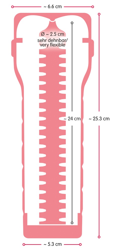 Vagin artificial foarte adânc, potrivit pentru penisuri mici, medii și mari! Adâncimea de penetrare este de 24 cm! Fabricat din material extrem de realist, ca și cum ai intra într-un vagin real cu bărbăția ta. Un masturbator foarte flexibil pentru bărbați, fabricat din material moale, extrem de realist. Ajutorul este echipat cu buze pubiene cărnoase, modelate, iar suprafața interioară a ajutorului este echipată cu înțepături stimulatoare, bile. La plăcerea experimentată se adaugă un tunel al dragostei îngust, care este atât suficient de întins, cât și flexibil. Stabilitatea dispozitivului este asigurată de o carcasă neagră, blocabilă, datorită căreia nu va aluneca din mână chiar și atunci când folosiți mai mult lubrifiant. După utilizare în această husă, dispozitivul poate fi depozitat discret. Impermeabil: 100% impermeabil: interiorul moale poate fi scos din carcasă, este deschis la ambele capete și nu conține părți electrice, ceea ce îl face ușor de curățat și confortabil de utilizat chiar și în baie. Caracteristici: -calitate înaltă -formă realistă -material extrem de realist, moale și flexibil -manșon practic, antiderapant -depozitare discretă, manșon în formă de lanternă -buze pubiene modelate -suprafață interioară stimulantă -tunel îngust al iubirii -moale la atingere -poate fi folosit chiar și în apă -ușor de curățat, deschis la ambele capete -lungime totală: 25.3cm -profunditate penetrare: 24cm -diametru exterior: 5.3-6.6cm -diametru gaură interioară: 2.5cm (extrem de flexibil) -culoare tel -în manșon negru Material: PP, TPE (în conformitate cu directivele UE, fără ftalați). PRODUS DE CALITATE DE DESIGN GERMAN. SFAT: recomandăm utilizarea doar a lubrifiantului pe bază de apă cu produsul. Curățare recomandată. Recomandat: utilizați un detergent special (06302500000) - poate fi comandat. SUGESTIE suplimentară: după curățare și uscare, tratați suprafața ajutorului cu pudră obișnuită pentru bebeluși, astfel încât ajutorul să își poată păstra moliciunea.