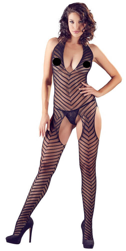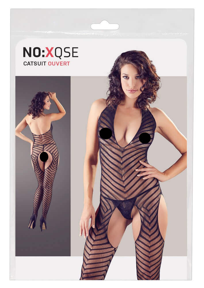 NO:XQSE - Salopetă cu curea la gât, dungată, deschisă, cu tanga (negru) O salopetă grozavă din plasă cu detalii în dungi care poate fi purtată pentru sex, atâta timp cât nu purtați un tanga din dantelă asortat pe dedesubt. Beneficii : Material moale, din plasă transparentă - nu numai confortabil de purtat, dar și fierbinteMai flexibil - se potrivește perfect pe mărimile S, M și LDecorat cu dungi în formă de V - rafinat, unicCu design cu bretele la gât și decolteu extra adânc - super sexyCu un design complet deschis în zona pubiană, mâneci nano și pe ambele părți la șolduri - poate fi purtat și pentru sex, nu împiedică penetrarea sau schimbarea pozițieiTong în formă de T din plasă aliniată cu un model în pachet care poate fi purtat singur în orice moment Acordați atenție la acest lucru: -poate fi spălat doar manual în apă cu detergent ușor - nu poate fi uscat, călcat sau albit - obiectele ascuțite și bijuteriile pot deteriora cu ușurință materialul său Specificații ale produsului, caracteristici: 1: -elastic, complet transparent, plasă, material din plasă - decolteu adânc - design cu curea la gât - picior închis - design deschis la gât halter, popsicle și pe ambele părți - culoare: Negru-Material: 90% poliamidă, 10% elastan-Mărime: o mărime se potrivește tuturor (se potrivește S, M și L) NO:XQSE - Salopetă cu curea la gât, dungată, deschisă, cu tanga - Negru (S-L)