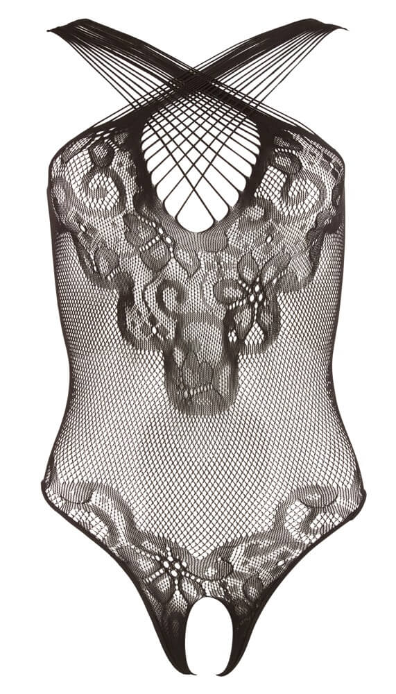 NO:XQSE Crotchless Body - corp din plasă cu flori - negru (S-L)
