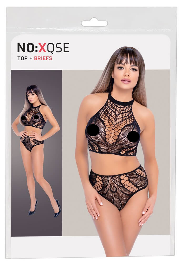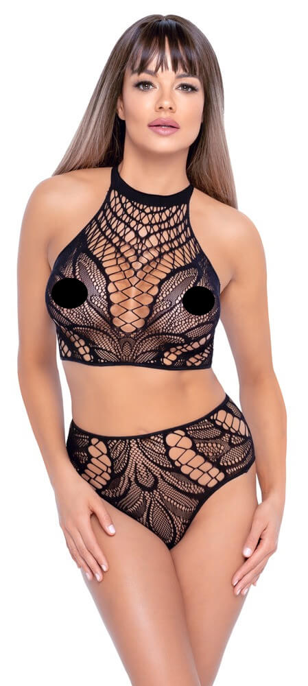 Set din plasă Genevieve Un set sexy, din două piese, care atrage privirea către cele mai dorite locuri - acoperindu-ți ușor sânii și fesele, dar în același timp punându-le în evidență... doar atrage ochii înfometați! Materialul din plasă elastică cu o plasă mare cu model de frunze se ajustează la toate curbele tale ca și cum ar fi a doua ta piele!... Mai multe informații