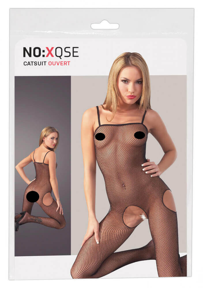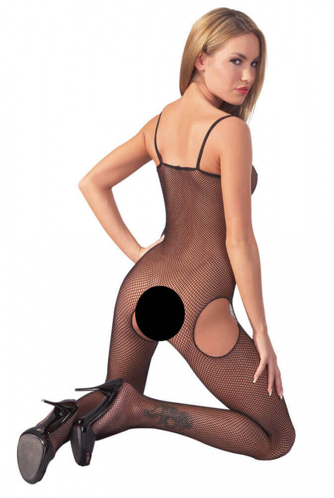 Aspect sexy, de foc! Salopetă confecționată din plasă moale, elastică, țesută dens, cu decolteu drept și bretele subțiri. Unicitatea salopetei este că este deschisă pe ambele părți pe șolduri și în poală, astfel încât să o poți purta chiar și în timpul actului. Material: 100% poliamidă. Culoare neagră.