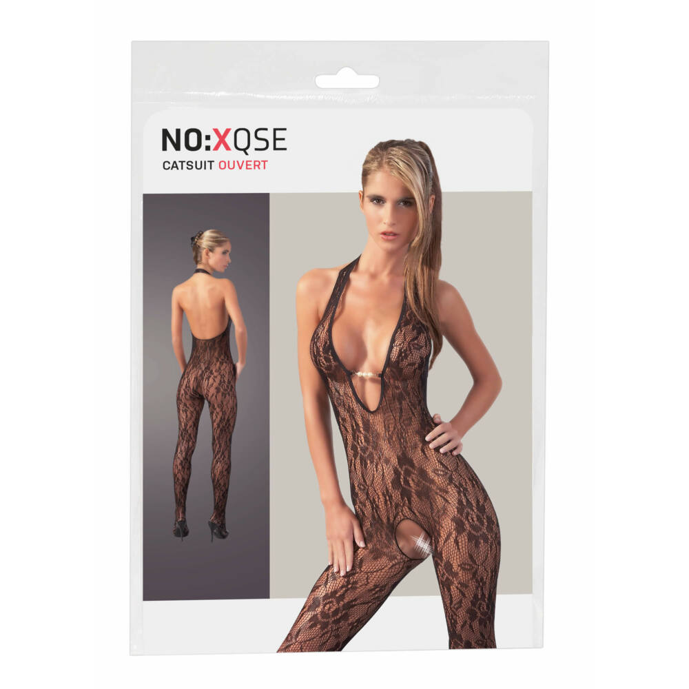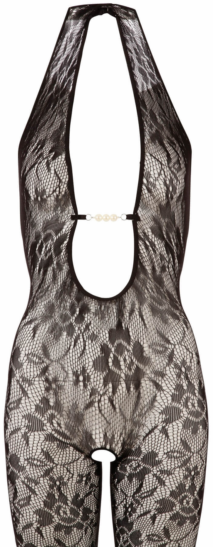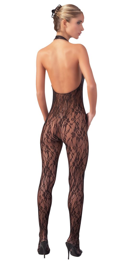 În dantelă moale din cap până în picioare. Salopeta din dantela eficienta, elastica, deschisa in piept, cu decolteu adanc, decorata cu perle. Curea în jurul gâtului, decolteu adânc pe spate. Culoare neagră. Mărimea: S/M. și L/XL Material: 100% poliamidă.
