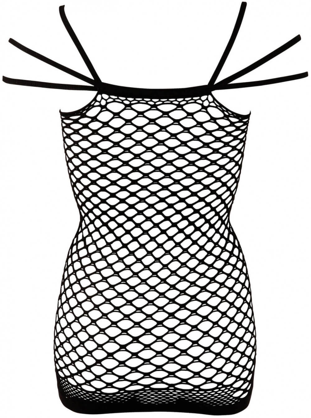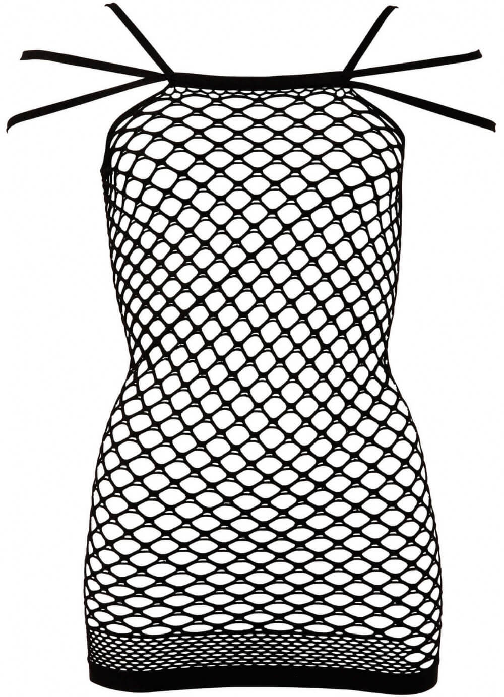 Minidress sexy din plasă! Minidress negru din plasă cu bretele triple. Material moale, elastic, de calitate extrem de înaltă. Mărime: S - L (mărime uniformă). Material : 85% poliamidă, 15% elastan.