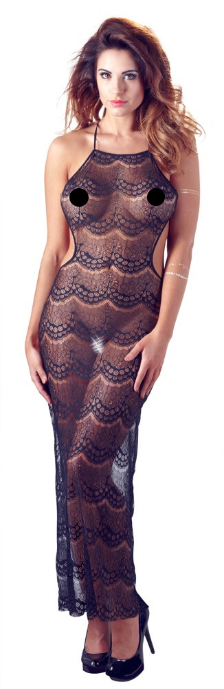 NO:XQSE - Rochie lungă din dantelă din tul (negru)