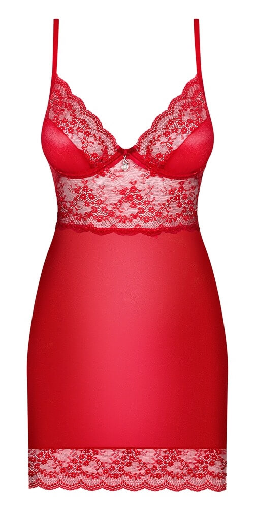 Obsessive Lovica - cămașă de noapte din dantelă cu tanga (roșu)