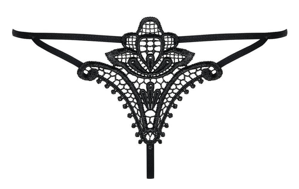 Obsessive Luiza - tanga cu broderie (negru) La prima vedere, un tanga de dama simplu, la care broderia florala de pe spate adauga senzualitate! Partea din față este realizată din plasă dens țesătă, flexibilă, cu o căptușeală confortabilă și moale în poală, pe spate este o broderie exclusivă, detaliată de lalele. Benzi elastice. Material: poliamida... Mai multe informații