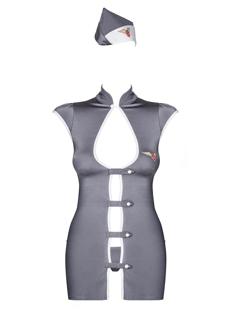 Obsessive Stewardess - Costum însoțitor de bord 3 piese (gri)