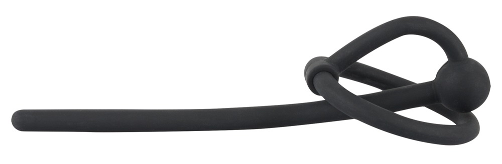 Penisplug - inel testicular din silicon cu dilatator gol (negru)
