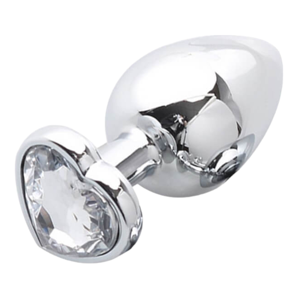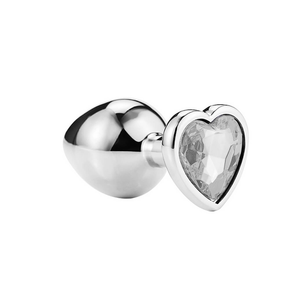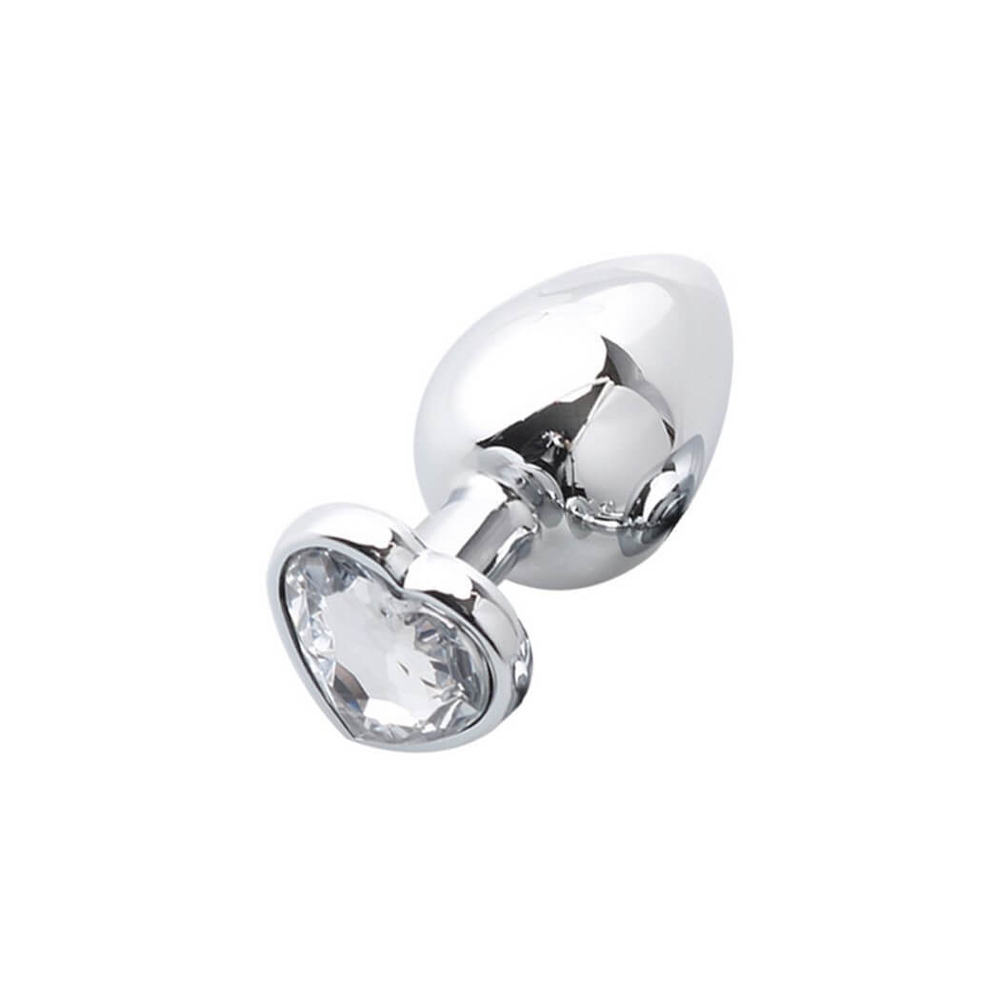 Sunfo - plug anal metalic cu piatra inimii (alb-argintiu)