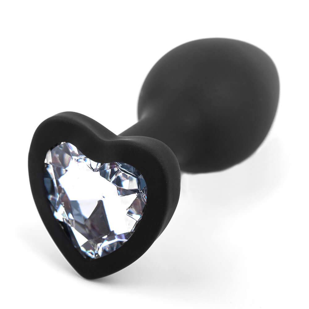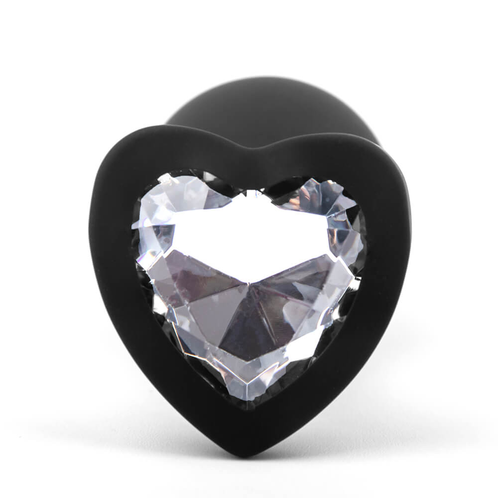 Sunfo – Dop anal din silicon cu inimioară strălucitoare (negru-alb)