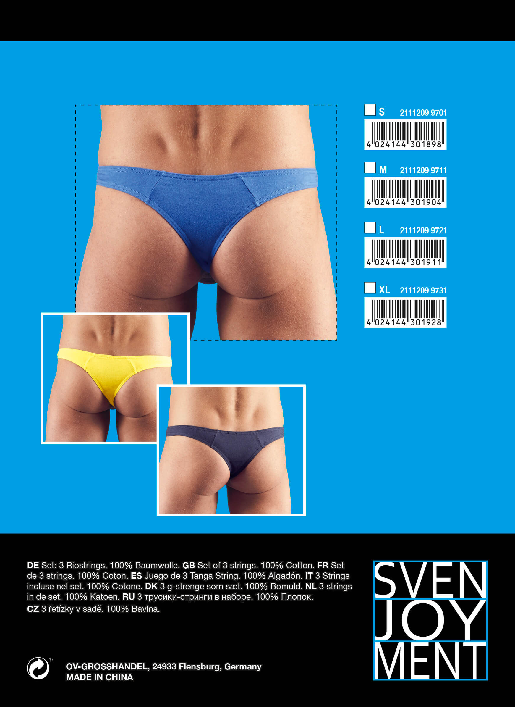 Set de 3 piese de tanga confortabilă pentru bărbați din material plăcut, de înaltă calitate (100% bumbac). Confortabil pentru momente erotice incitante sau dacă doriți lenjerie neobișnuită pentru a vă condimenta viața de zi cu zi. Conținutul setului: -1 tanga albastru regal -1 tanga albastru inchis - 1 bucata de tanga galbena Material: 100% bumbac. Mai multe informații