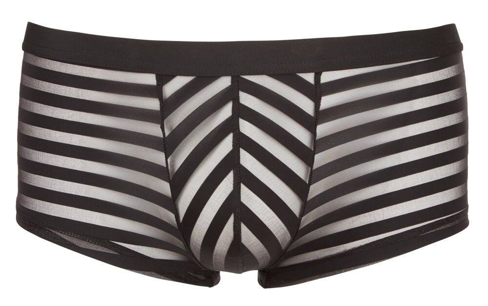 Boxeri din material la modă, flexibil, confortabil, cu dungi strălucitoare, transparente pentru un aspect spectaculos. Cu o centură largă.