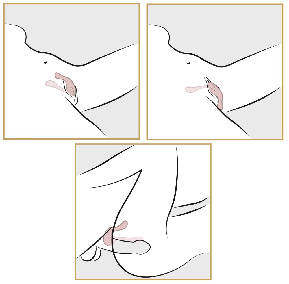 Capătul rigid se introduce, iar partea flexibilă rămâne la exterior pentru stimulare – în funcție de poziție și preferințe.