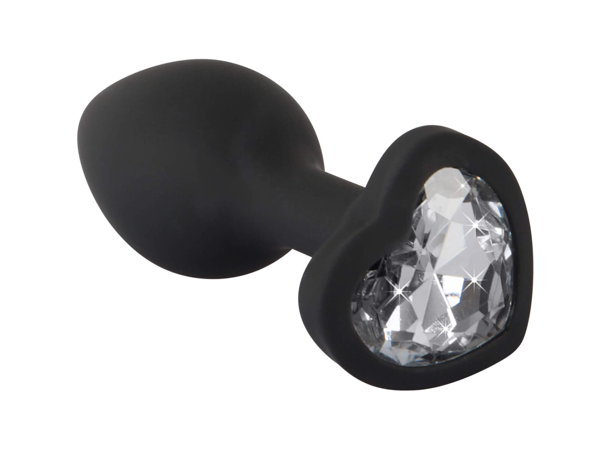 You2Toys Dop de fund din silicon - Dop anal în formă de inimă cu stras alb (negru)