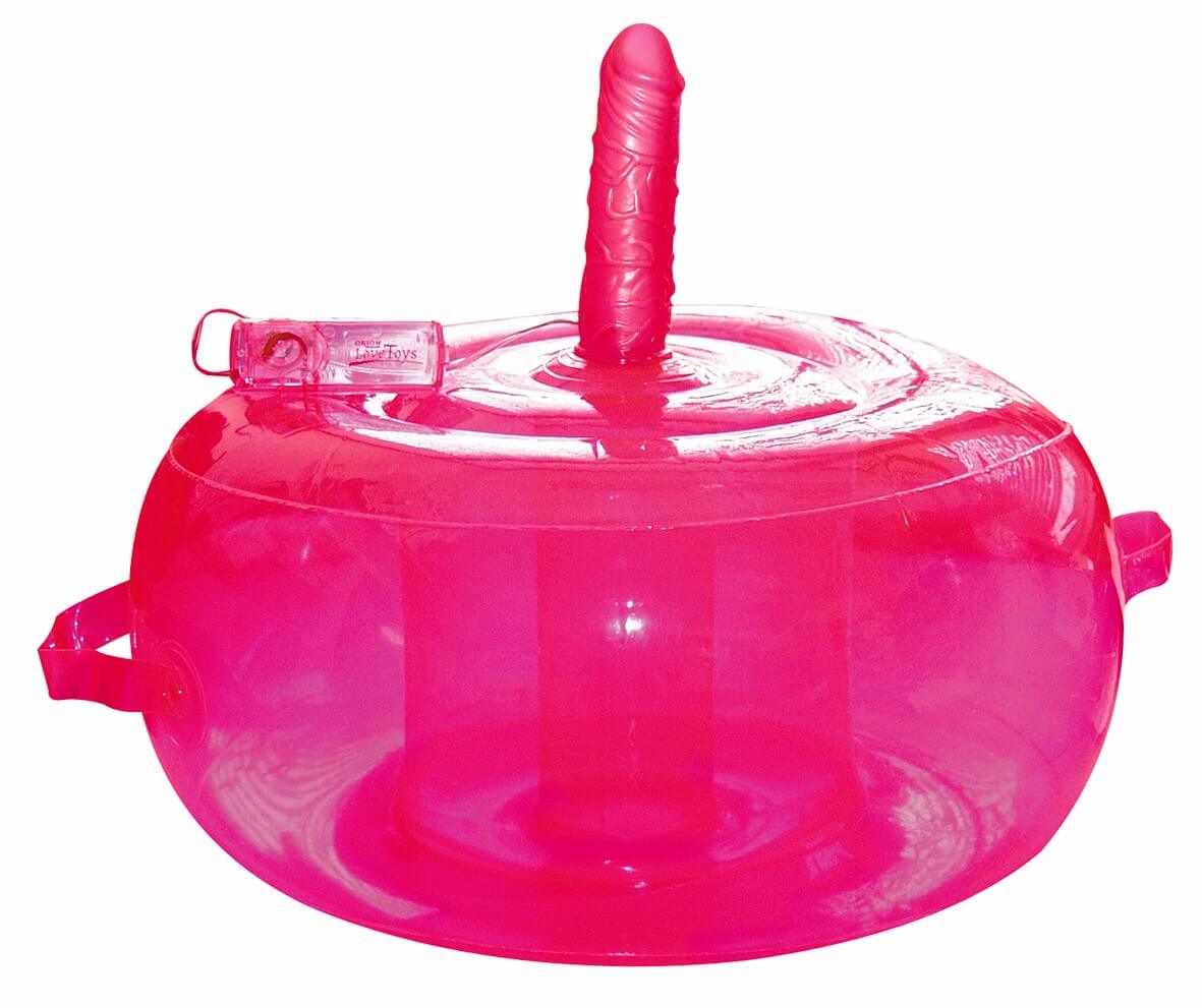 Fotoliu sexual gonflabil cu vibrator integrat în formă de penis și cu mânere mici pe ambele părți.