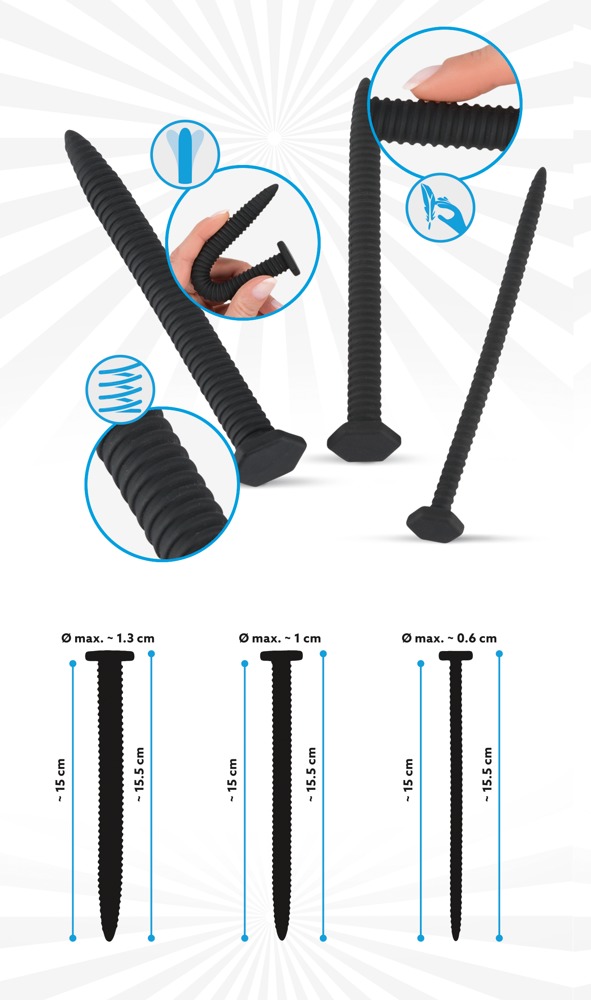 You2Toys Set dilator cu șurub - Set de 3 dilatoare uretrale extrem de lungi (3pcs) Dilatatoare uretrale de lux Screw Dilator realizate din silicon premium prietenos cu pielea pentru iubitorii de plăcere suplimentară! Pentru începători, intermediari și avansați în dilatarea uretrei! Setul include 3 dilatatoare în formă de șurub cu diametre diferite... Mai multe informații